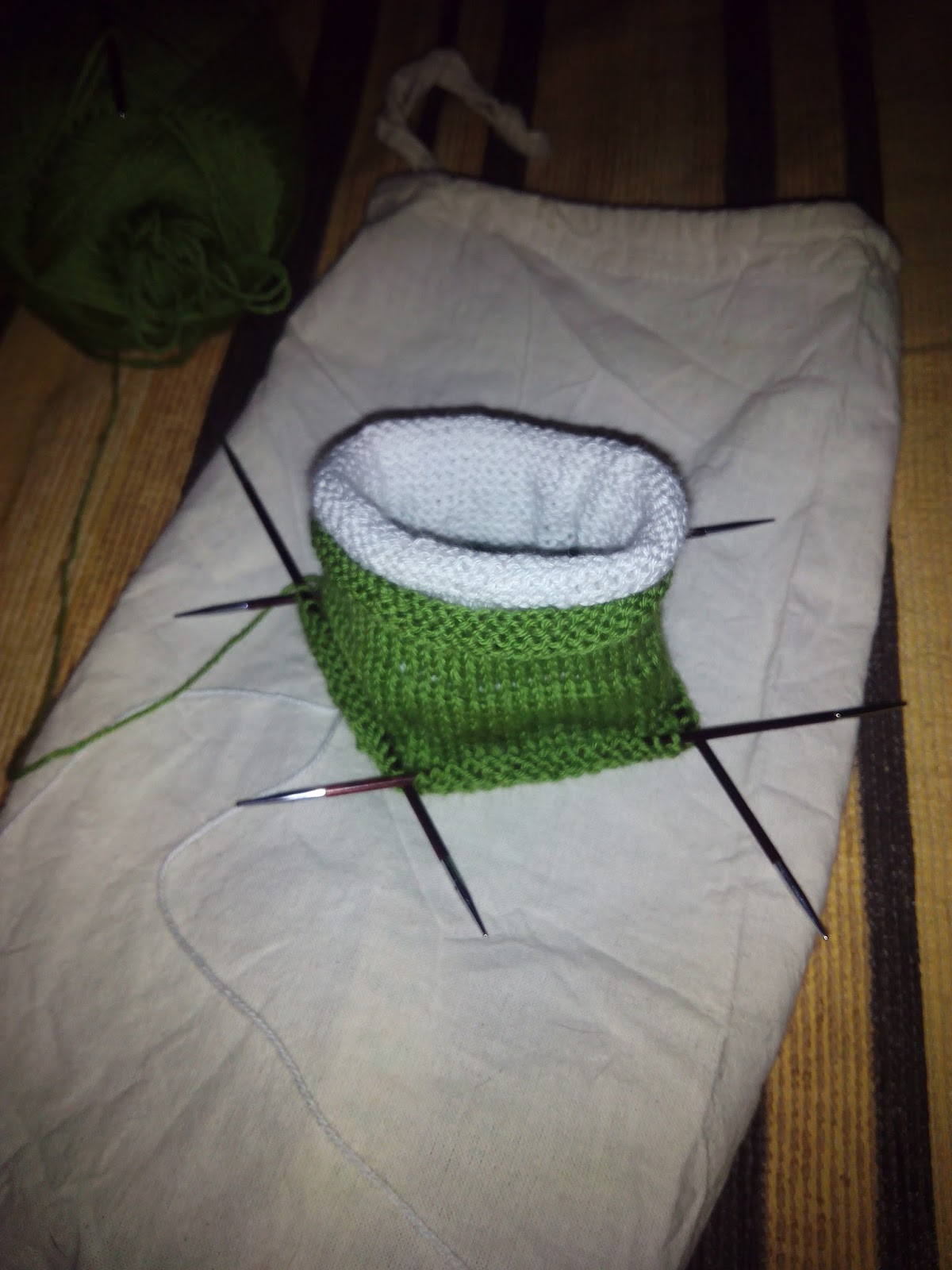 - Y la menda lerenda otros calcetines, éstos con agujas circulares tejiendo los dos a la vez.